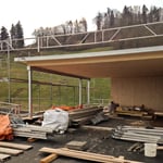 | Beschrieb | Aufbau von Räumen für Pausenküche und Aufenthalt auf bestehende Flachdachkonstruktion. Aufgehängte Ausführung an Stahlträgern, ohne statische Belastung von Fassaden mit Fensteröffnungen. |
